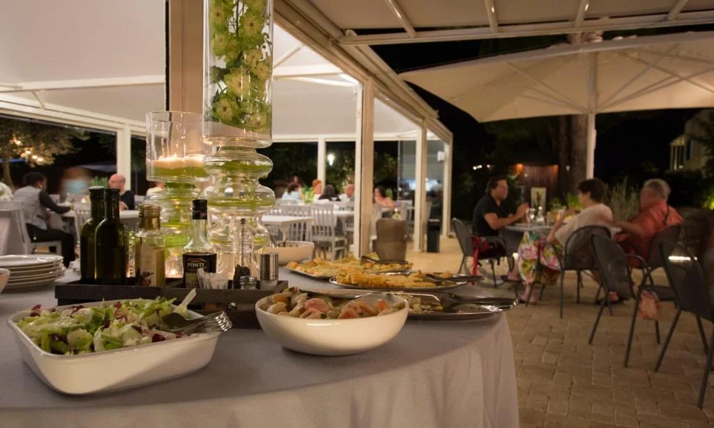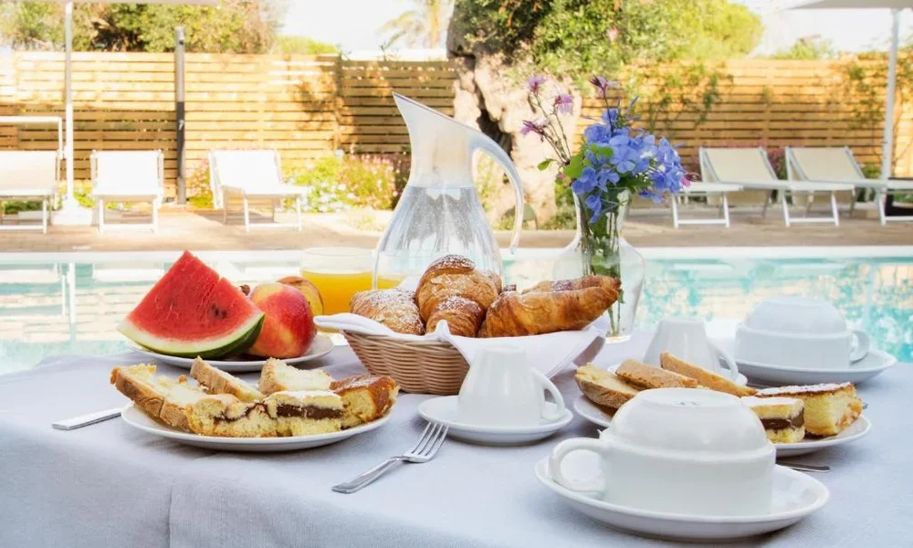 Il ristorante dell’hotel, L’Ombra del Carrubo, è immerso nel verde: il luogo ideale per gustare una cucina genuina, semplice e di qualità, legata alla tradizione pugliese, con proposte di carne e pesce sempre freschissimi. Molto apprezzate le serate a tema, con menu speciali, in cui vengono proposti piatti particolari in un’atmosfera festosa. La prima colazione, servita in giardino ogni mattina, offre un ricco assortimento di proposte dolci e salate fresche e di qualità, tra cui, immancabili e deliziosi, i tipici pasticciotti. |
