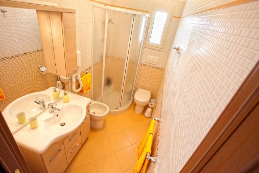 angolo cottura attrezzato di stoviglie, bagno con ampia doccia e asciugacapelli, letto matrimoniale più 2 letti singoli, cassaforte, Tv a schermo piatto, aria condizionata.