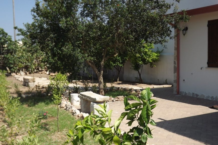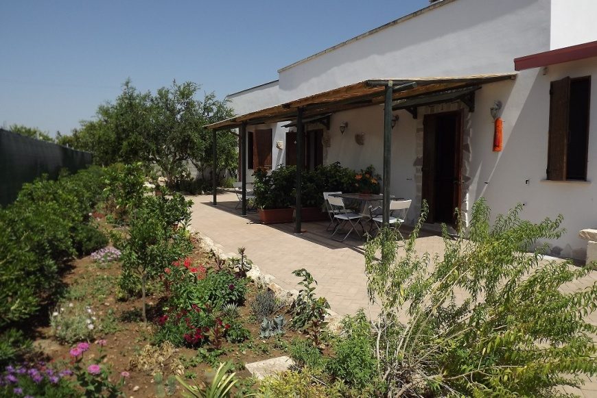 Questa casa in affitto per le vacanze in provincia di Lecce, dispone di un bellissimo giardino con posto auto coperto.