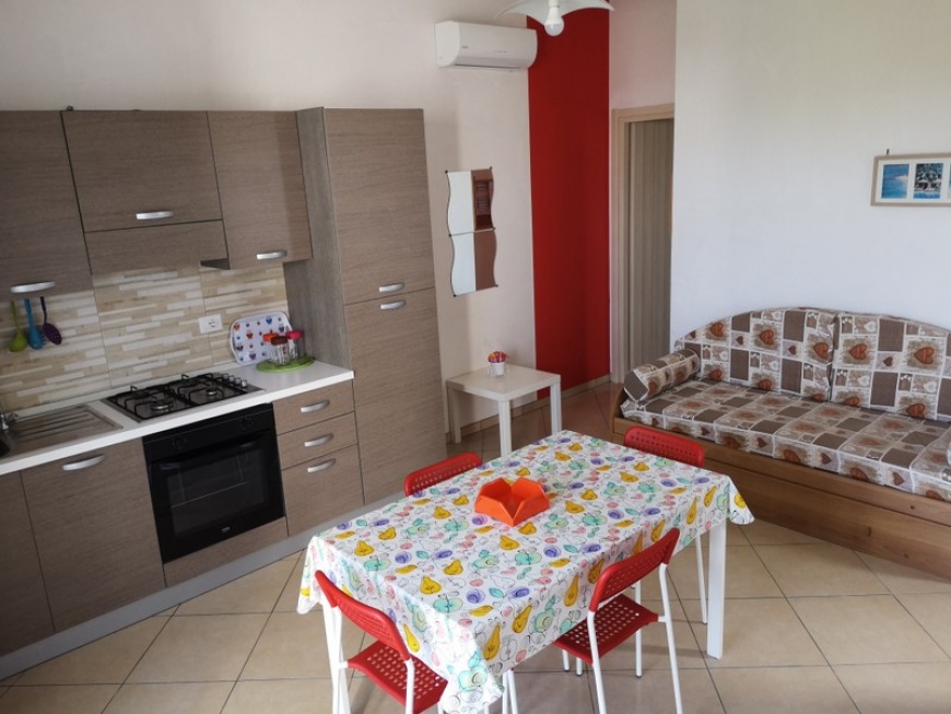 - ampia cucina con tv 32" e divano letto singolo (con secondo letto estraibile), camera da letto matrimoniale, bagno e porticato attrezzato con tavolo e sedie.