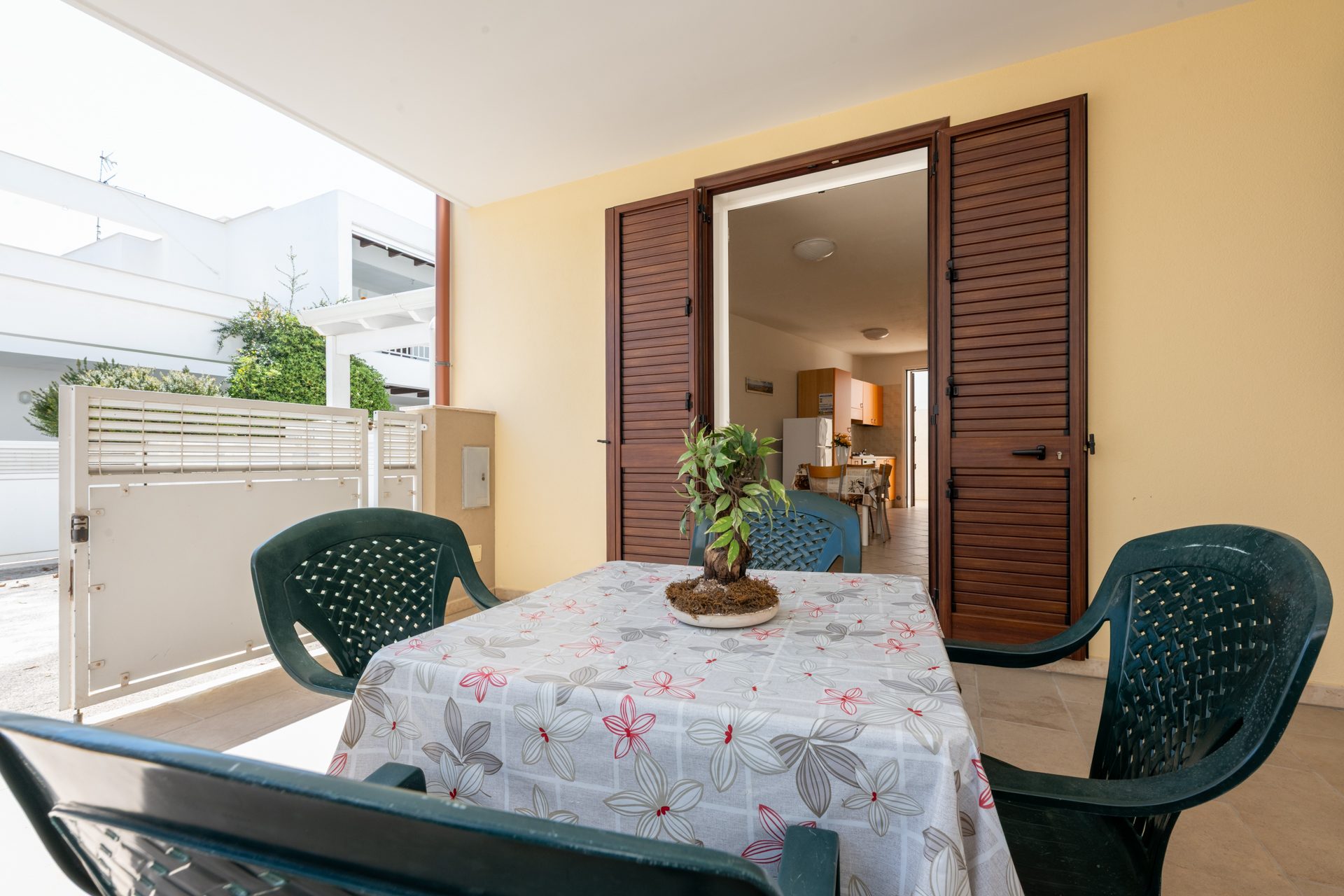 Verande esterne anteriore e posteriore, attrezzate con tavolo e sedie