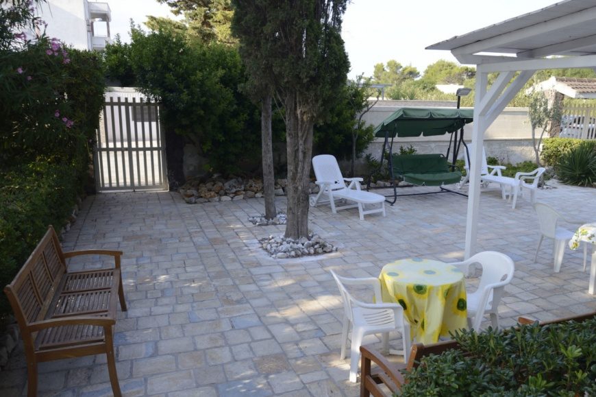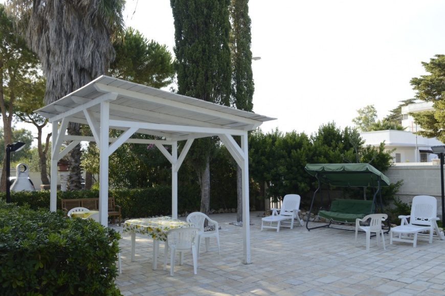 La struttura è immersa in un grande giardino con pineta, dove sono presenti panchine, sdraio, barbecuee e dei tavolini.