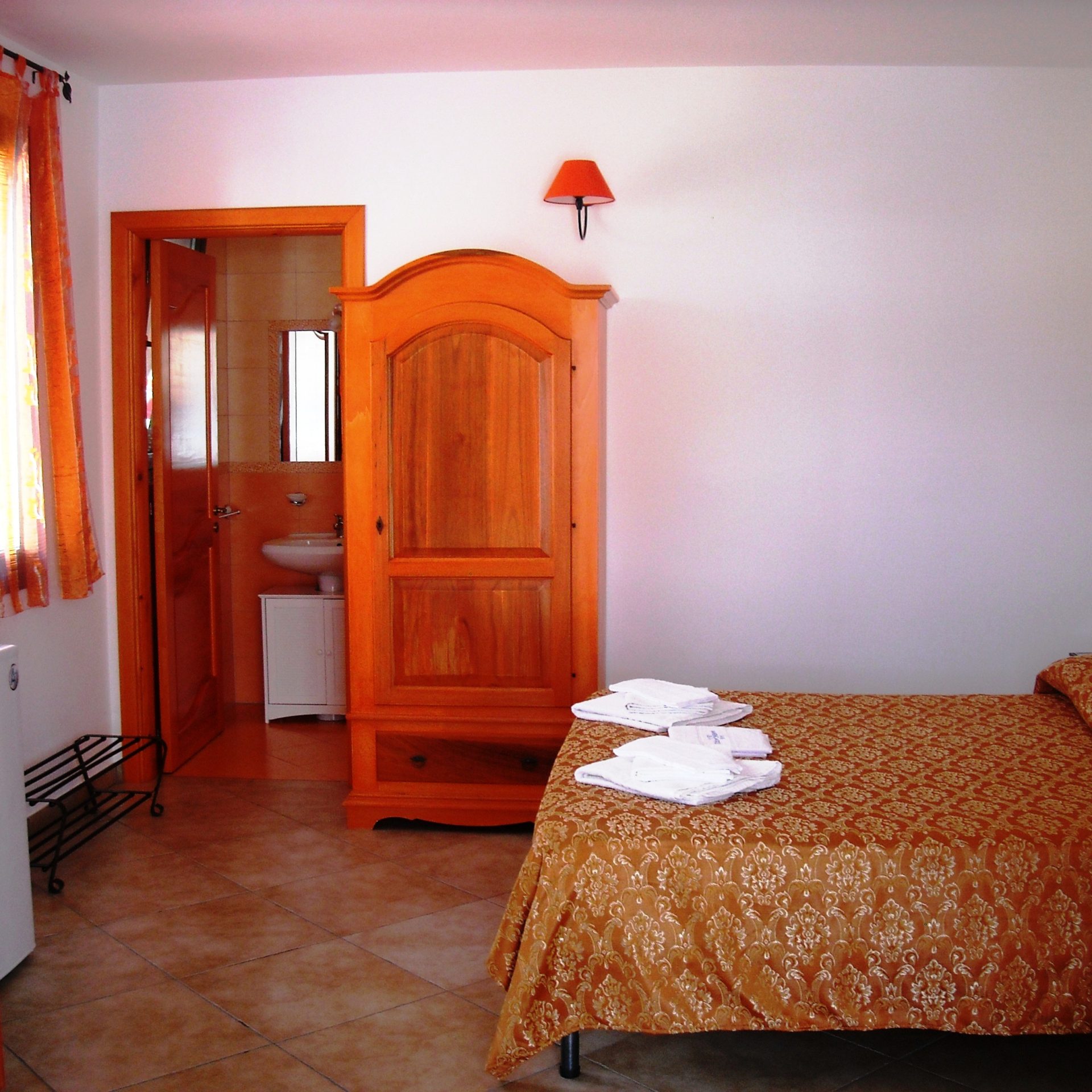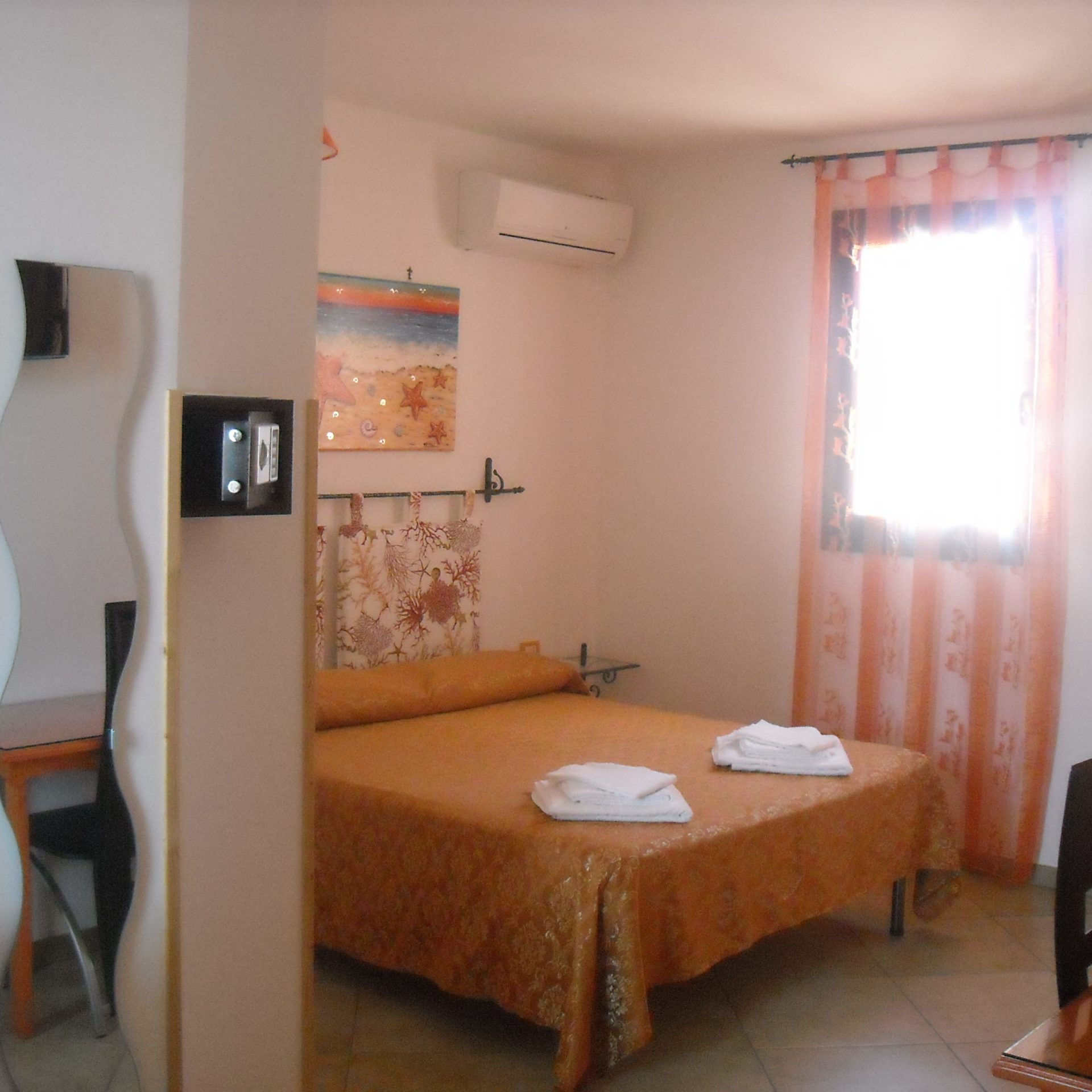 Servizi: Ampia camera matrimoniale con patio esterno, bagno in camera con finestra, colazione, fornitura di biancheria da bagno e da letto, pulizia giornaliera, climatizzatore, cassetta di sicurezza, frigo, Wi-Fi Free, tv, accesso terrazza panoramica dove vi sono gli stendibiancheria.