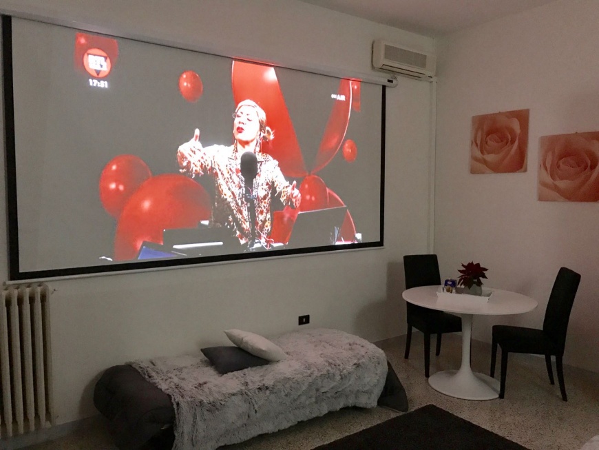 – Marylin’s room con tv schermo gigante con Dolby surround, frigo bar, cassaforte, free wify con annesso Centro Benessere (1° piano) e Centro Fitness di 1000 mq al pian terreno.