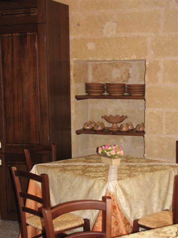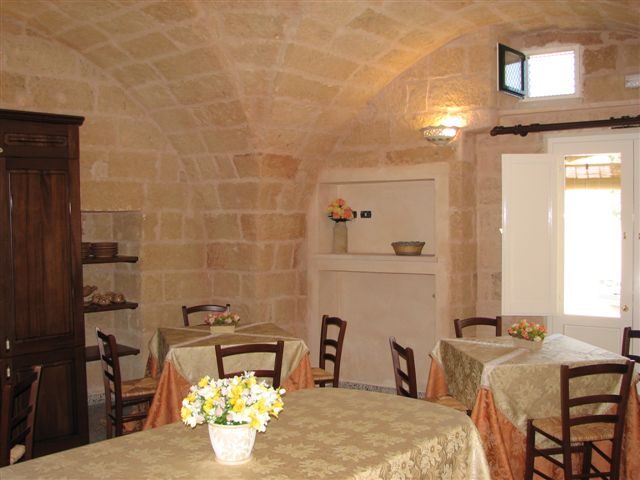 La colazione viene servita a buffet in un ampio e suggestivo salone con un antico camino o nella corte, così l’atmosfera e il sapore dei prodotti tipici salentini fanno da cornice a un ottimo inizio di giornata.