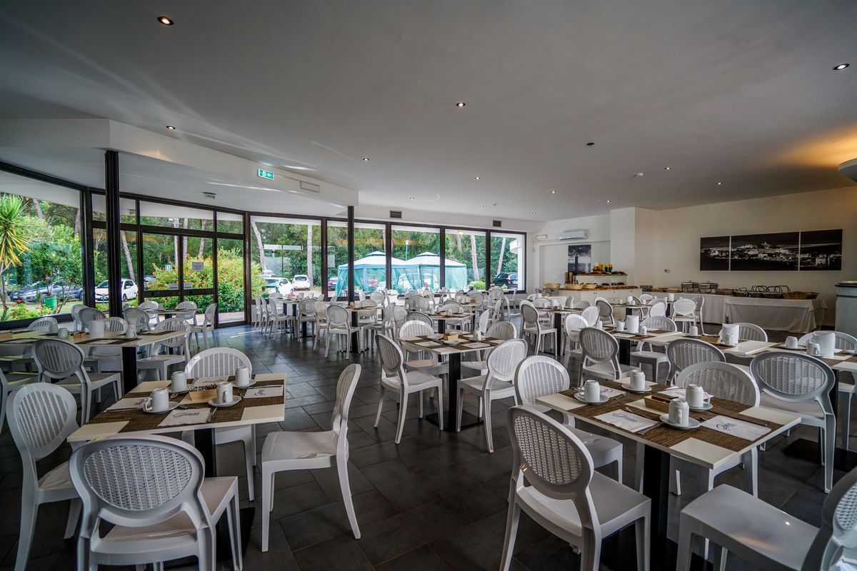 La sala colazioni è situata nel corpo centrale di questo residence sul mare nel Salento.