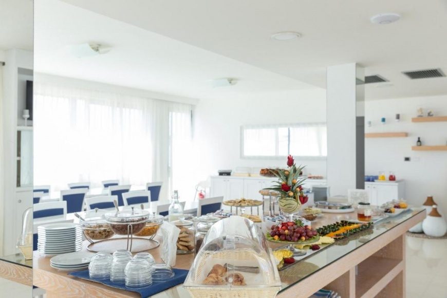 L’hotel dispone di un ristorante vista mare con un’ampia e confortevole sala dove è possibile assaggiare gustosi piatti della tradizione culinaria salentina.