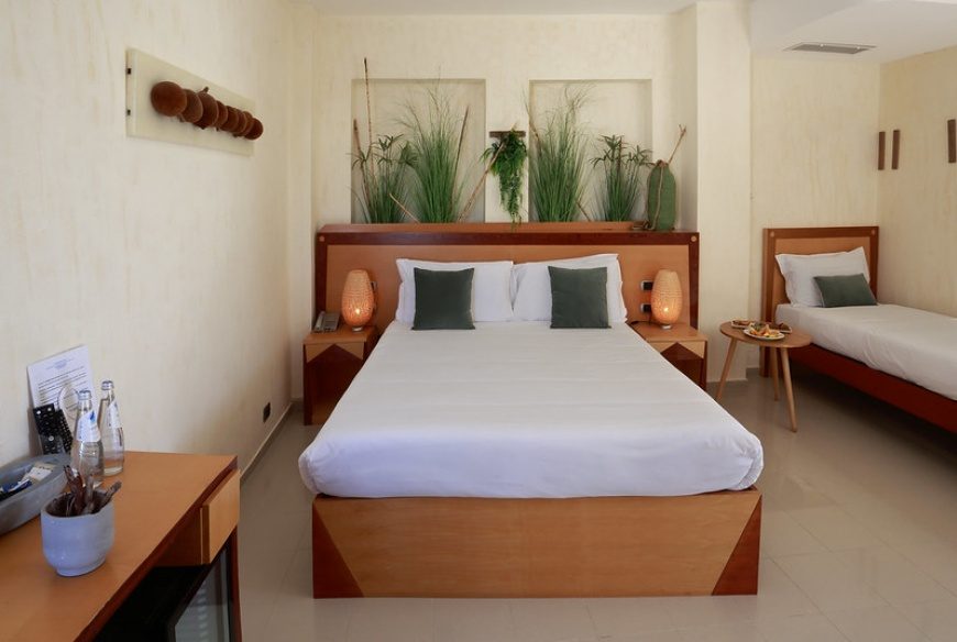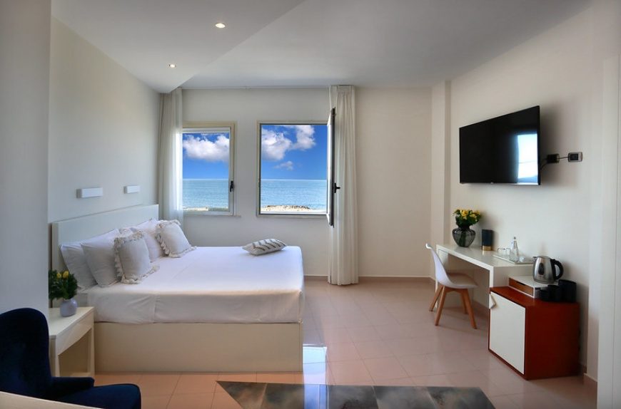 19 bellissime camere all’interno del Hotel Piccadilly a Santa Maria al bagno, tra Suite, Deluxe, Superior e Standard, molte delle quali si affacciano sul mare.