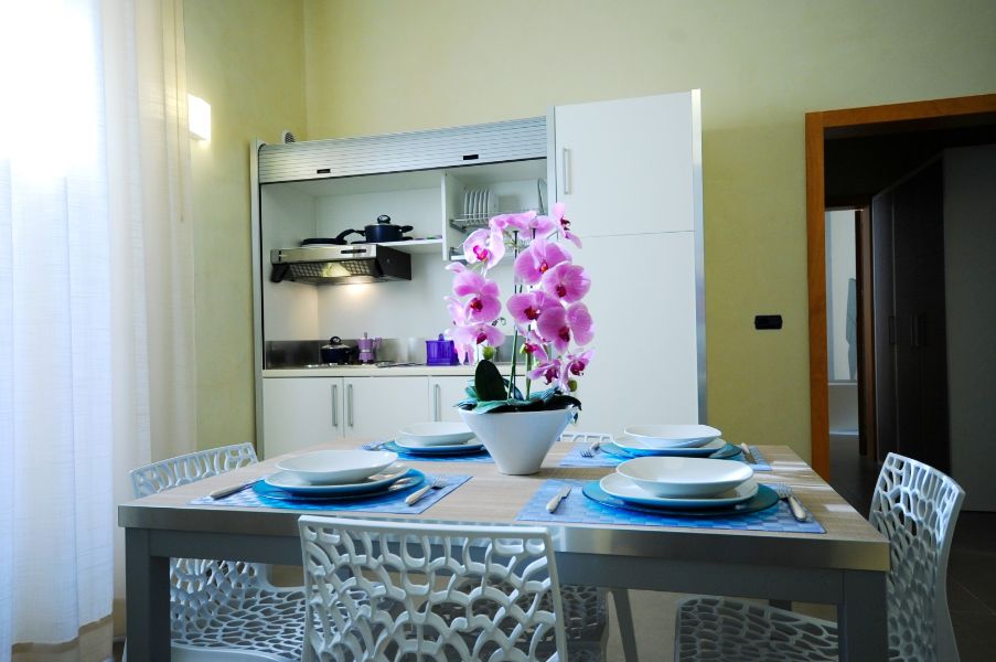 Gli appartamenti in centro a Gallipoli offrono cucina con frigorifero e congelatore; il tovagliato è incluso.