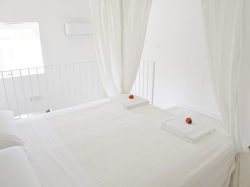 In Masseria Ruaccio troviamo 5 camere di 30 mq tutte complete di ogni confort per godere a pieno della vacanza.