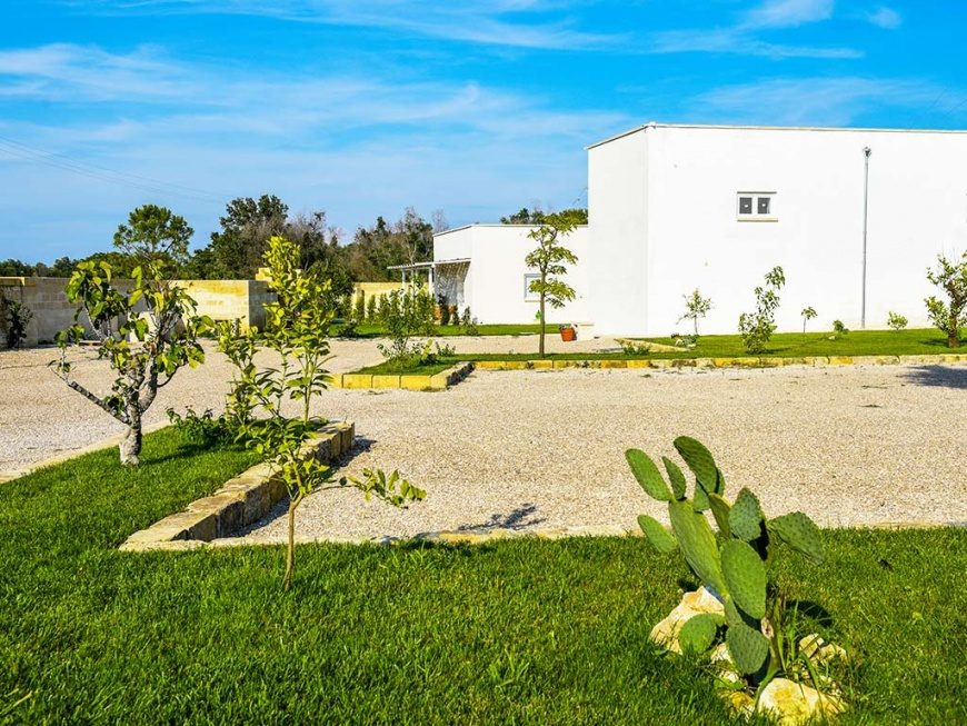 Masseria Rauccio a Torre dell’Orso ristrutturata nel 2017, mantiene la caratteristiche originali della struttura. Il suo lato esterno mantiene la muratura originale e la facciata a vista, mentre sul lato est ci troviamo sulla ricostruzione di Roca Nuova.