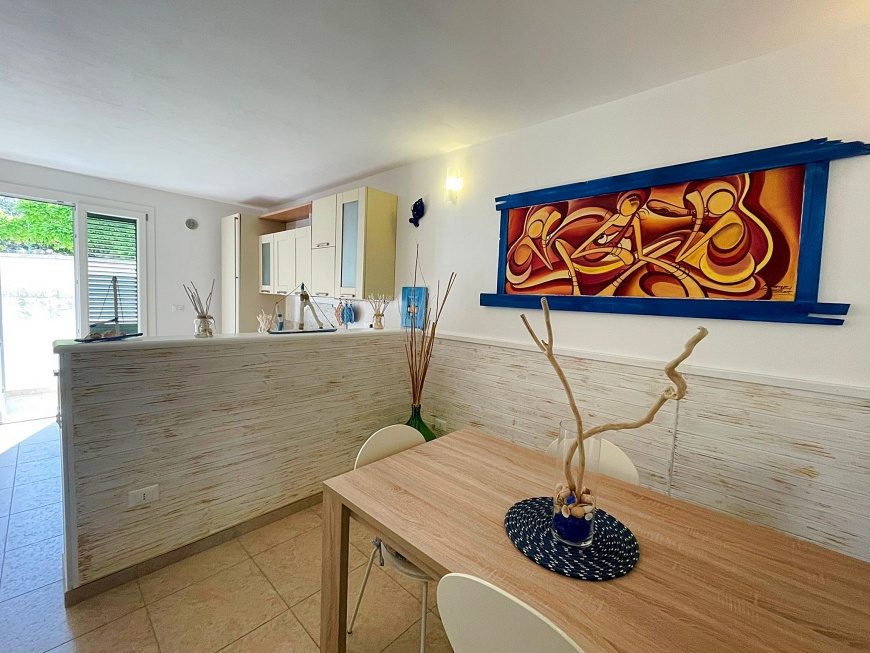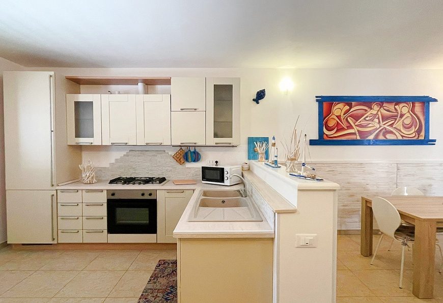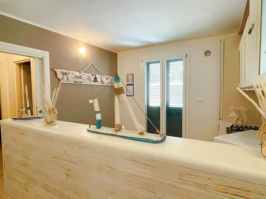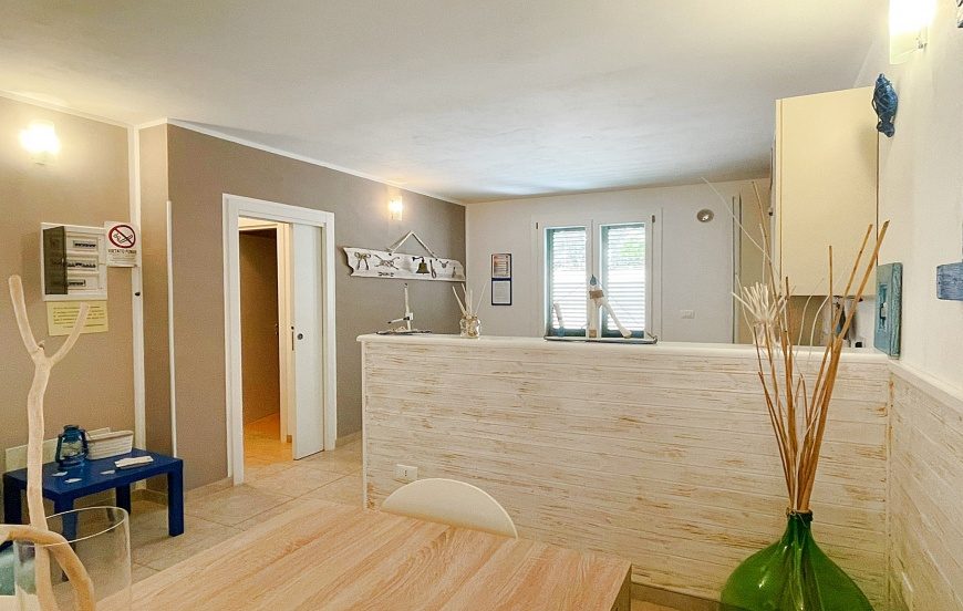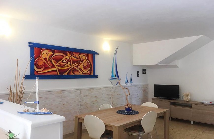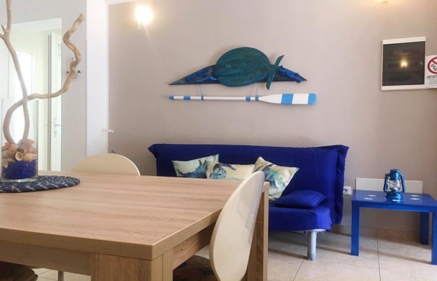 La Casa del mare in affitto per 4-5 posti letto a Santa Maria di Leuca ubicata al piano primo a 50 metri dal mare ed composta da un ampio soggiorno con angolo cottura e comodo divano, disimpego, due camere da letto e bagno con box doccia.