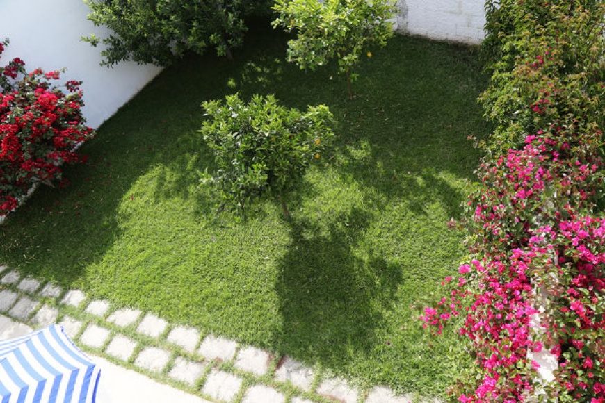 Gli appartamenti a piano terra invece godono invece di un giardino curato con arredi esterni e box doccia.