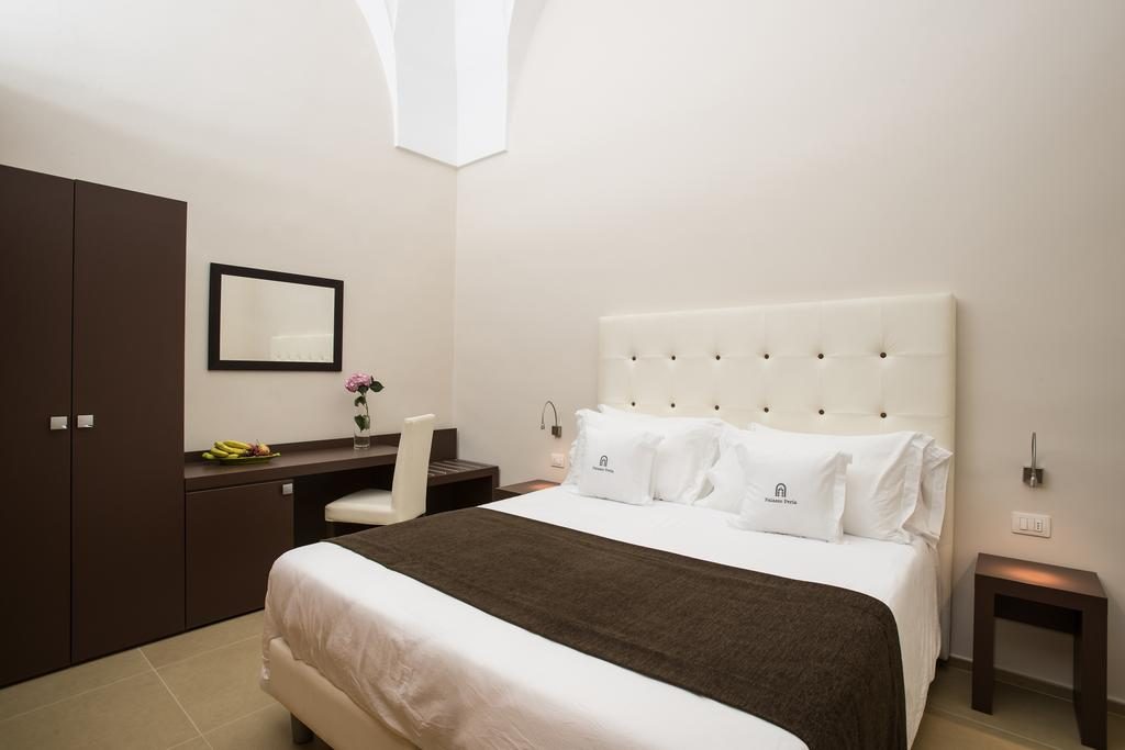 Palazzo Perla – Rooms and Suite è costituito da 5 camere, ognuna con bagno privato, arredate con materiali di pregio e dotate di: