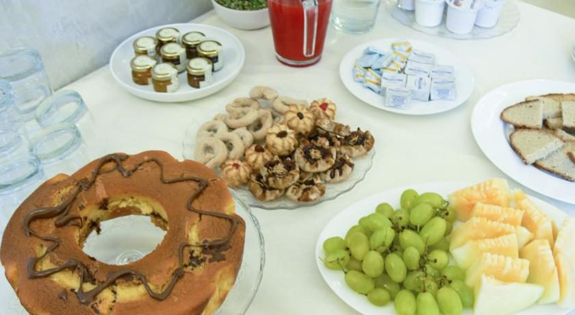 Ogni mattina gli ospiti saranno accolti da una ricca colazione a buffet con pasticciotti e fruttoni leccesi crema e marmellata, torte, ciambelle, crostate e altro ancora, mentre il pomeriggio non può mancare un fresco e ottimo aperitivo.