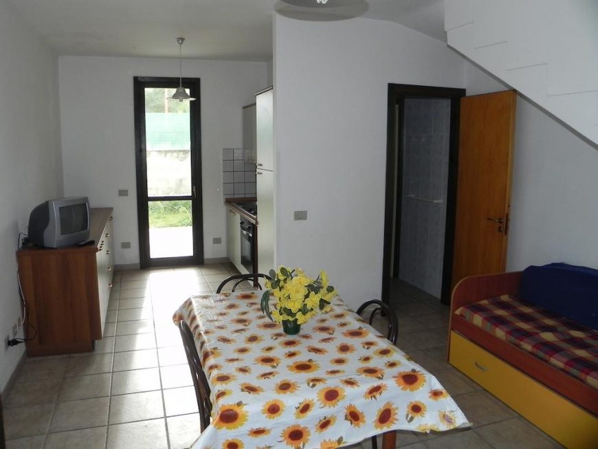 è situato al piano terra e dispone di soggiorno con divano letto doppio, camera matrimoniale, cameretta con letto a castello, giardinetto anteriore con doccia e giardinetto posteriore.