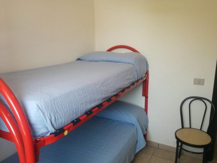è situato al 1° piano e soggiorno con divano letto doppio, camera matrimoniale, cameretta con letto a castello, 2 balconi e piccolo cortile al piano terra con doccia.