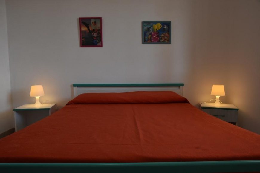 Bilocale 4 p.l. Tipo “A”: é situato al 1°piano e dispone di soggiorno con divano letto doppio e camera matrimonialeun balcone e piccolo cortile al piano terra con doccia.