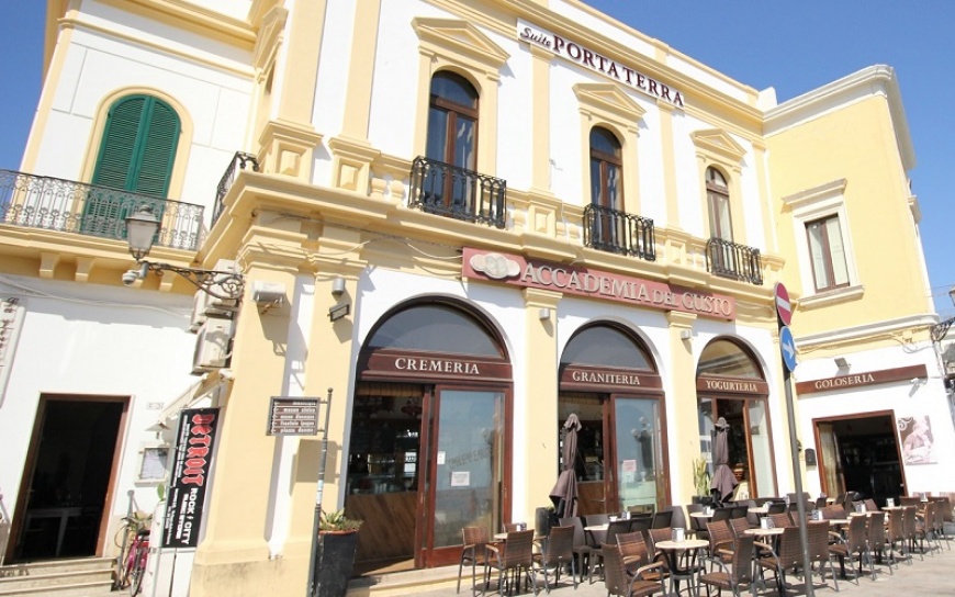 Suite Porta Terra è un immobile di pregio storico, situato in Riviera Cristoforo Colombo 3 a Gallipoli, sul crocevia di primo accesso del centro storico, alla fine del ponte seicentesco.