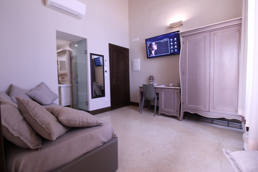 Suite Porta Terra dispone di 3 camere: due Classic e una Suite, quest’ultima con tre balconi panoramici rivolti sulla costa a sud, a nord, sul porto, mercato antico e castello angioino, composta da soggiorno con elegante salottino ed una camera matrimoniale.