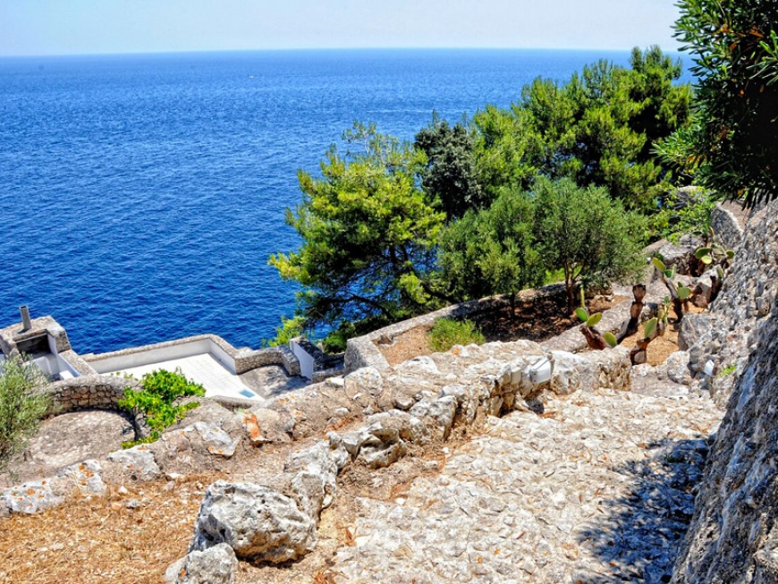 Villa Bocca del Pozzo struttura raffinata ed elegante, aggrappata alle rocce della scogliera sembra sospesa tra cielo e mare.