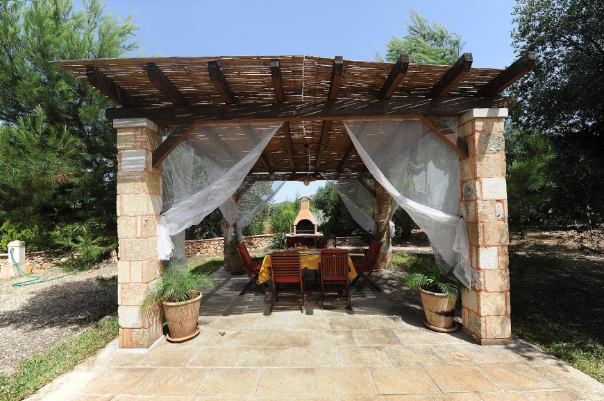 Giardino comodo con mobili da giardino (3000 m2), recintato (altezza più di 1 metro).